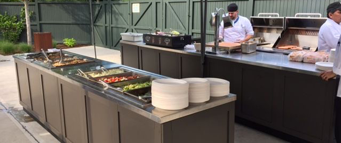 Catering is an integral part of entertaining outdoors. The concept and use of an outdoor kitchen by caterers is becoming more and more popular with the emergence of dining and entertaining beyond the walls of one’s home outdoors. For larger family gatherings or catered parties hosted on a regular basis, it may be best suited to have a well equipped outdoor kitchen space. The hub of that space would be not so much a luxury outdoor kitchen but a multi equipped “professional use” outdoor kitchen.