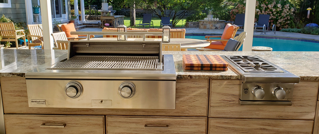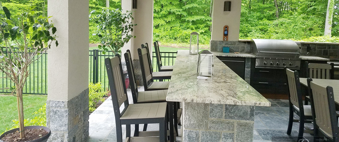 Outdoor Counters are something you think about last as it should be most likely considered first. For a few reasons, one being the most important is the desired thickness of the counter. Counters outdoors depending on what materials you choose can range significantly in thickness and ultimately in finished height. This slight varying amount is a big game for the cabinets, plumes, electrician and setting the grill and appliances in place. At times most projects can be completed without this prior knowledge and the final result is ok but perhaps it is not award winning.