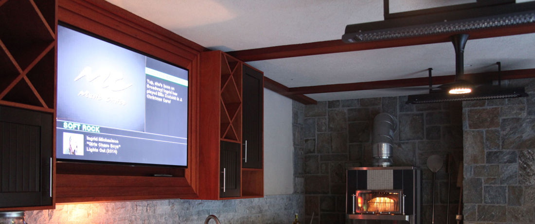 Most times it is best for controlled automation from a vantage point inside the outdoor kitchen or anchored to a column or securely mounted to a house facade. Many times programmed remotes can be lost or simply get wet poolside. You also don’t want to be glued to your phone all the time.