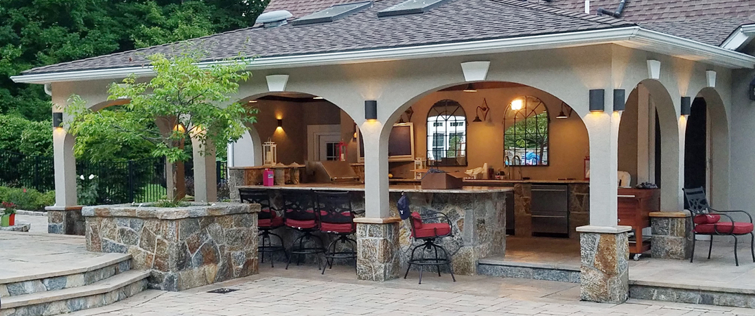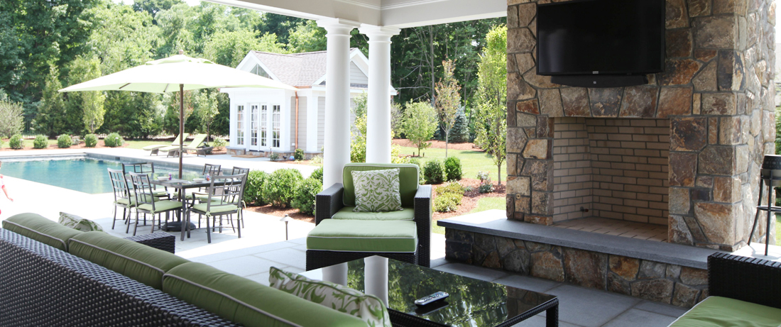 The outdoor room is complete to be filled with sound, Tv, automation, bar and beverage, fire features, games and cozy furniture. The outdoor room is sometimes adorned with different heat sources other than the grill. A Pizza oven is a great example to have pizza outdoors while watching movies and such. The outdoor room also presents itself as a place to glorify the celebration of a rewarding life and mostly an area to indulge in endless hours spent outdoors with family.