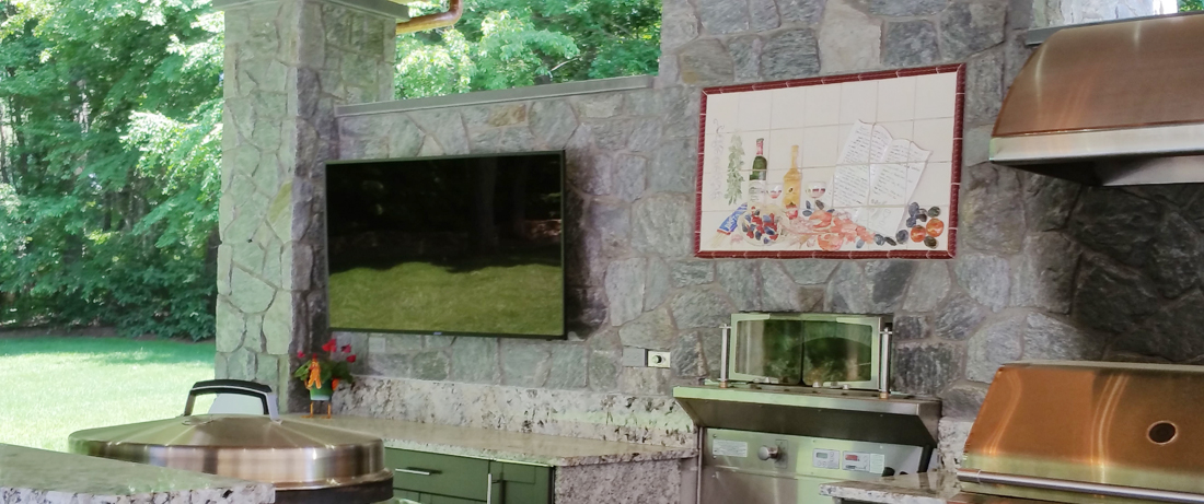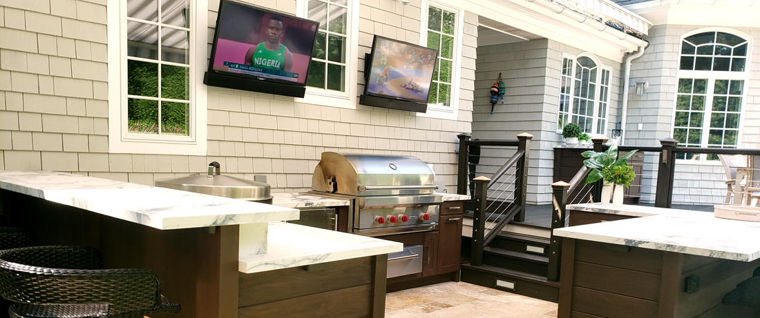 At the end of the day tv’s attract a comfort level with friends and family that all are accustomed to. Our outdoor cabinet line includes television cabinets that help prevent excess winds and debris when the television is not in use. The outdoor cabinetry also makes the upper tv area look a lot cleaner when not in use.