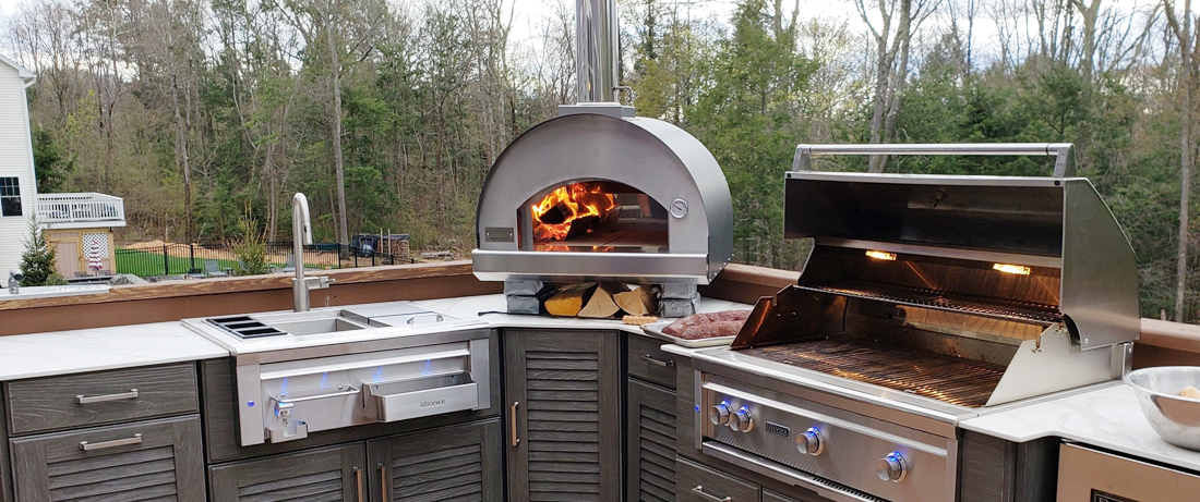 Just like there are many grills, refrigerators & beverage configurations there are many styles of pizza ovens to choose from suggesting you hand off the project design, specification product list and build to an Outdoor Kitchen specialist.