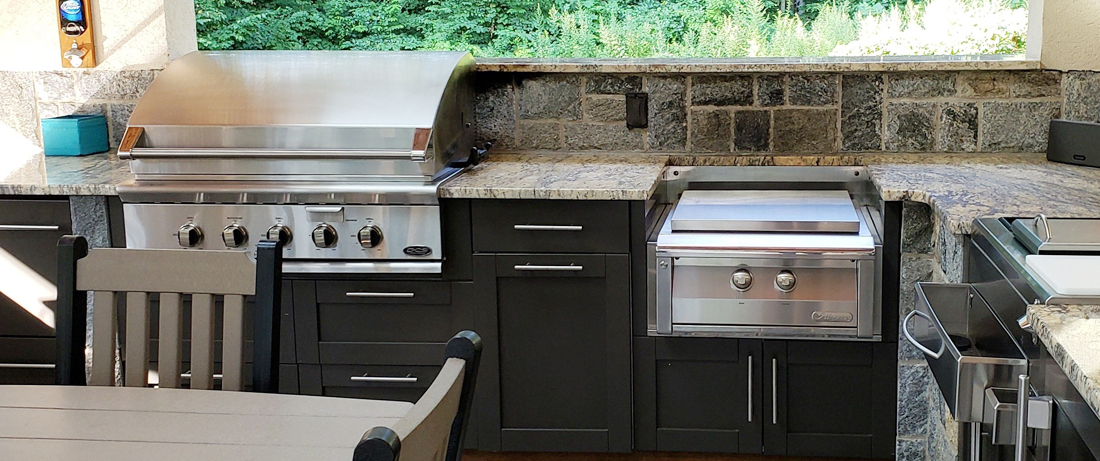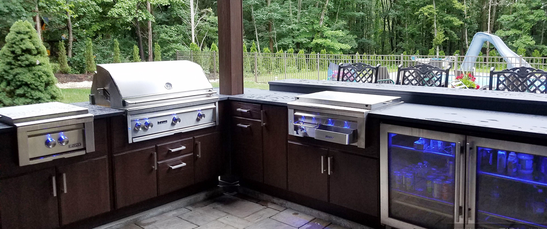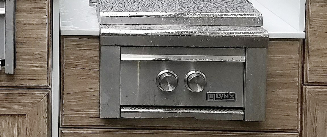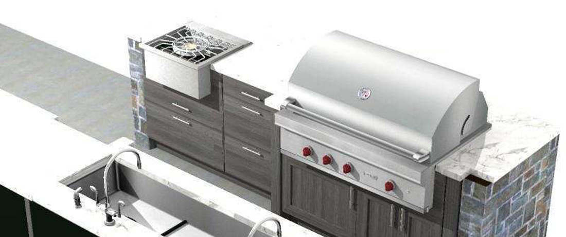 Life beyond the hood of the grill is easily assisted with a power burner. When we design our outdoor kitchens we create three concept spaces that handle food preparation, cooking and conversation.