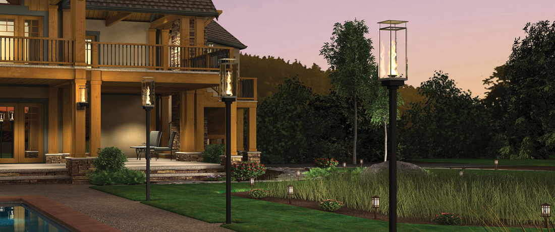 If there is one thing in someone’s backyard that speaks volumes for itself in a resort kinda way it fire torches. The lit fires at an elevated height sporadically placed throughout the backyard turns your once backyard into the coolest backyard ever. To create such ambiance safely and securely one must have UL listed fixtures that can be mounted on light pole risers and installed in the ground via concrete to keep the pole intact. A fuel line must be equalized and brought out to each fire torch. The torch manufacturer I like to use is the Tempest Torch. The Tempest Torch’s tempered glass housing design directs the oxygen needed for combustion, increasing the flame velocity for a dramatic, spiral-like presentation of fire. Beyond its groundbreaking design, the Tempest Torch’s practicality and usability are just as impressive. The variable flame reaches a height of 17″, puts out up to 20,000 BTUs and is available in electronic ignition.